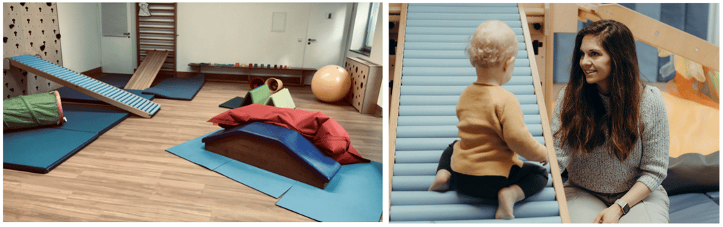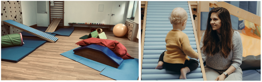 Möglichkeit Erfahrungen mit verschiedenen Materialien und unterschiedlichen Höhen zu machen. Sie lernen so von ganz alleine, wie sie an der einen Stelle hoch krabbeln und an der anderen Stelle
